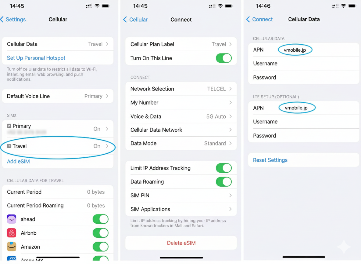 - In the APN fields, enter the APN setting according to your eSIM plan page.